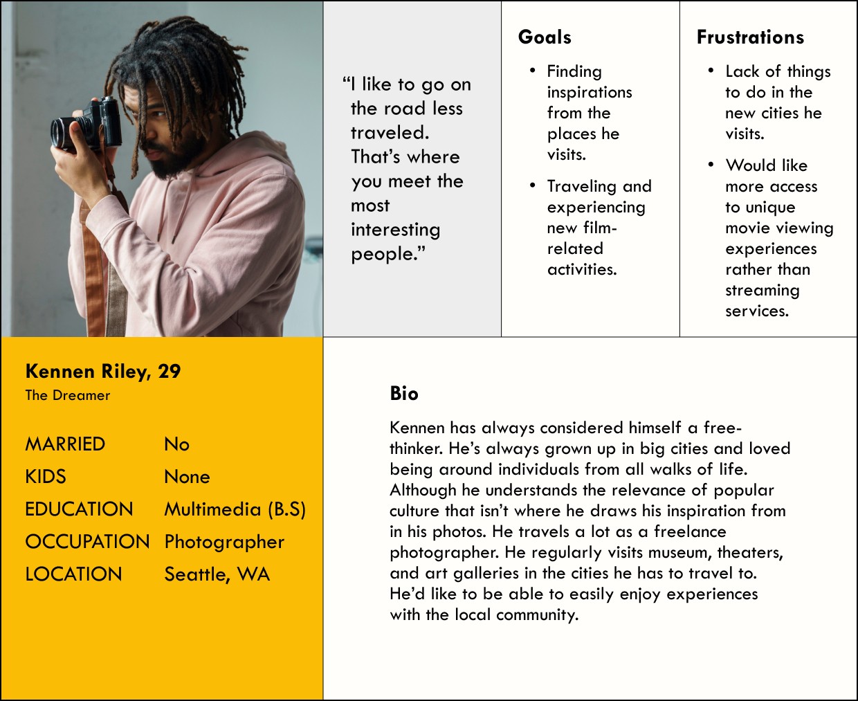 During testing most users valued the quality/setting of the venues over the actual movies. Most users showed great interest in the venues, and the movies associated with each. Movies tended to reflect the attributes of outdoor cinema.