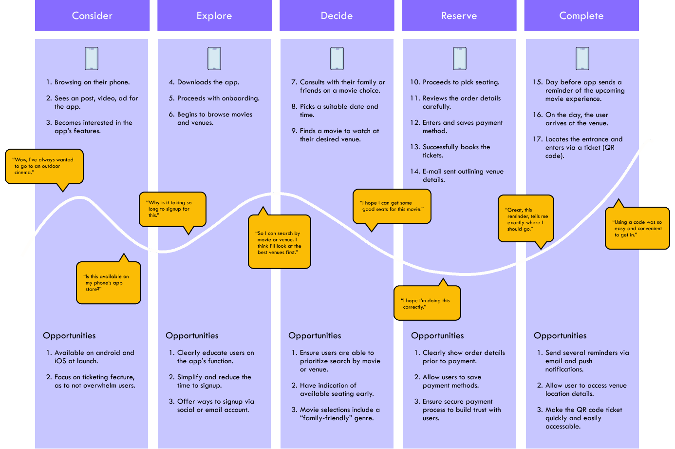 Design a solution were users are able to simply browse and reserve tickets for any outdoor cinema near them.